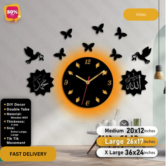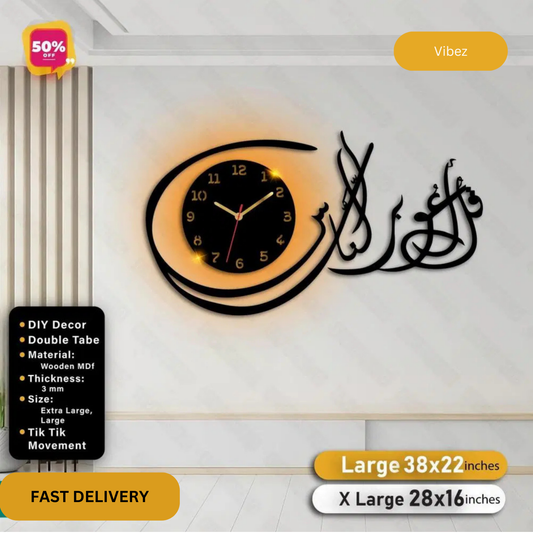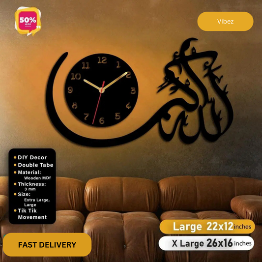 Allah Hu Akbar Islamic Wooden Wall Clock